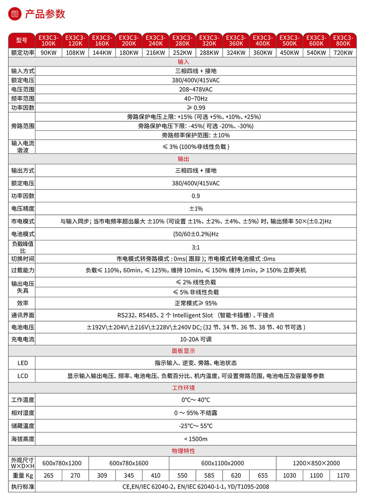 8, Three in three out pure online dual transformation product, support 380/400/415V, 50/60Hz Power grid system, Provide the most suitable power supply quality and load protection;